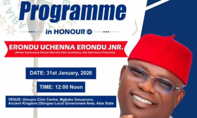 It was indeed an outpour of immense joy and gratitude as the people of Obingwa West State Constituency on Saturday 31st of January 2026 witnessed an empowerment programme, that can be better described as first of its kind in the entire Obingwa LGA, carried out by a House of Assembly Member in the person of Hon. Erondu Uchenna Erondu Jnr.